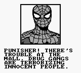 Now, say what you will about the state of mature games on the NES and Game Boy, but the primary audience at the time for those consoles was certainly grade school kids. Superhero games were nothing new on the NES, but it's different to have SpidermanSure, DC Comics has Batman, Superman, and Wonder Woman, but among the most popular superheroes stands a guy from Marvel Comics, a younger hero dressed in red and blue who shoots webs and sticks to walls. Introduced in the 1960s, Spider-Man has been a constant presence in comics and more, featured in movies regularly since his big screen debut in 2002. going around knocking out bad guys and the Punisher clearly killing dudes left, right, and center. That is not to say that the Punisher was the only violent video game on the NES, as there were plenty (and plenty of shooters within that set). But when you see The Punisher (or it's Game Boy iteration, The Punisher: The Ultimate Payback!) in action, it's hard to not feel at least a little squiffy about it.