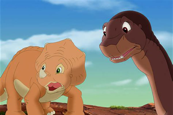 It should come as no surprise, then, that while Bron and Littlefoot mate, the dad doesn’t stick around. Deadbeat has to go off with his new herd, back to wherever he’s been living with his new family. There’s a promise we’ll see him again, one day (which we eventually do, in an episode of the TV series and also the last film of the franchise), but the series has to reset itself back to neutral and that means Littlefoot and the familiar gang can go to the Great Valley. No one else is allowed in. Hell, even a new dinosaur they befriend and invite to come to the Great Valley, Pat (James Garner), disappears after this film, never to be seen again.