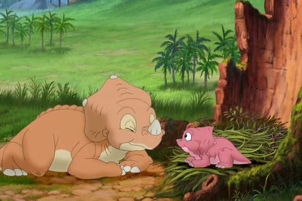 All of this then amounts to very little, as well. Petrie’s story barely intersects with Cera’s story at all until the very end. Up to that point his story has nothing to do, thematically or structurally, with Cera’s plotline. There’s no overlap in tone, nothing that drifts from one storyline to the other. Outside of the climax of the film, these two plotlines could exist in entirely separate films. It’s only when little Tricia falls into a river and has to be saved that Petrie swoops in and rescues her, and even that is just circumstance. In a different setup for that action sequence it would be Littlefoot or Ducky who save her instead. Petrie does it simply because this is supposed to be his movie so he needs a hero moment to prove himself. Otherwise, it doesn’t matter who does what.