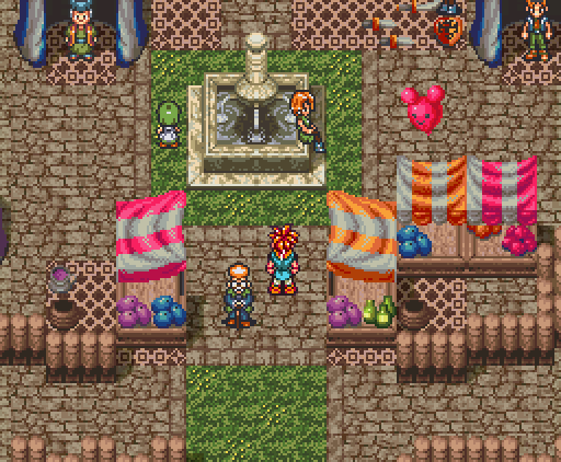 In many ways, Chrono Trigger is a pretty bog-standard Squaresoft (pre-SquareEnix) JRPG. You get your team of reluctant heroes who get sucked up into a whirlwind adventure to save the world, all while exploring dungeons and battling enemies. If you ever played a Square game before you probably will be familiar with many of the basic mechanics. Many of the items have similar names and functions to other Square RPGs (like Ethers and Elixers). Your characters all do battle on a field with the standard active time battle meters ticking down below. And, of course, if you look hard enough you'll find a Biggs and a Wedge, two recurring character names from the Final Fantasy series, tucked into the game as Easter Eggs.