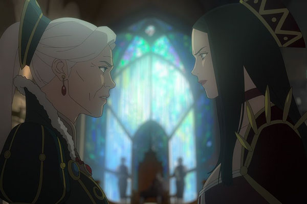 And then it absolutely exploded in popularity, becoming a massive success for streaming service NetflixOriginally started as a disc-by-mail service, Netflix has grown to be one of the largest media companies in the world (and one of the most valued internet companies as well). With a constant slate of new internet streaming-based programming that updates all the time, Netflix has redefined what it means to watch TV and films (as well as how to do it).. Many have noted that Netflix absolutely loves to cancel series almost as soon as they're done airing their first season, cutting everything that doesn't become a cultural phenomenon. The Witcher defied that, almost instantly getting green-lit for a second season, and plans were put in place to capitalize on that success: a behind the scenes show about the making of he series, an anime prequel, and live action series prequel as well. The making of came out soon after the show found success (but I hate documentaries so I'm never going to watch it) and now we have the next part of that massive franchise: the anime film The Witcher: Nightmare of the Wolf. Fans of the TV show, though, should be warned: while this film isn't bad it doesn't hold a candle to the thrills of the main series. The film introduces us to Vesemir (voiced by Theo James as an adult, David Errigo, Jr. as a child), the Witcher that would eventually go on to be Geralt's trainer and mentor. Here we have an origin story for this hero and, unlike the stoic and perpetually grumpy Geralt, Vesemir is a talkative, lively fellow. This is a man living at the peak of Witcher power, enjoying the benefits of the life while ignoring the rumblings from the populace that the Witchers are "a scam, a con perpetrated on the poor and needy." Witchers come into a region and kill the monsters, but what if the Witchers were responsible for the monsters or, worse, there were no monsters at all. All they had is the word of a Witcher and could those "monsters" (we're talking about the Witchers now) really be trusted. Most of these nasty rumors come from mage Tetra (Laura Pulver) and her cult of followers. They preach the negative word against the Witchers and work on the local king to not only banish the Witchers but also attack their stronghold and kill them all off. Fate, though, would seem to be on the side of the Witchers as Vesemir and Tetra are forced to work together to investigate monsters in the local woods that are terrorizing the populace. Vesemir just wants to do his job (and then get back to whoring and drinking) but Tetra is sent along to watch him and verify it's not just a long con. But with an "ally" like Tetra nothing is what it seems and soon the mages and the Witcher could be pitted against each other for the safety of the kingdom... and more. When we meet Geralt in the TV series it at a time, and in a region, where Witcher are distrusted, even hated. Going back to Vesemir we see a different era, one where the Witchers are local heroes. That makes this film not only an origin story for Vesemir (as we see not only his time as a Witcher but also his own back-story for how he got there) but also an explanation for why the Witchers fell from grace. All that being sad, this film is a bit of a hard sell, at least to fans of the TV show, as little of what is seen here really seems to have much bearing on the show. For starters, we don't know Vesemir (not yet as he won't show up until season two). While the character is voiced and portrayed with a ton of charisma, striking quite the dashing figure, this is still a story about a guy that so far doesn't have much bearing on the plot of the main series, dealing with events far enough in the past that they, too, don't really affect where we are in the main story. Anyone wanting to know why Witchers are distrusted could have simply seen how they reacted to the least charismatic man in the world, Geralt, and gotten an inkling that maybe Witchers aren't well liked, and that would have been enough. Getting the details, as of right now, don't really seem to do much. Yes, there's more reason for the people to hate the Witchers (as is revealed in the twists of this film), but as far as giving us a necessary understanding, the film fails on that front. The rest of the cast of characters (save for a cameo at the end) also don't really show up again in the main show. That's largely because they all die so anyone you might get attached to here isn't long for this world (and won't be showing up in the rest of the franchise). Yes, Vesemir is the exception, eventually, but everything else here feels very far removed that you have trouble caring about the what, why, or when of any of it. The film needed a deeper connection to the lore we know, especially for those of us that have only seen the show; expecting us to care because Vesemir is in the books, or the games, or whatever fails to understand a chunk of the audience or what they need from the show. But even if you do know the books and the games I have a feeling there would still be at least one piece of the puzzle that wouldn't work no matter what: Tetra. Vesemir in this film does arguably go on a character arc, starting off as an uncaring (but jovial) sot before finding he had to get involved in politics and business and saving the world. Tetra should be our counterpoint to Vesemir, a grounds character that has good reason to distrust the Witchers but who, during the course of their arc, maybe gains some kind of understanding of them. She can still stand opposed to them but growth needs to happen for this character for us to care about her. Instead, though, she starts off as a shrew that hates the Witchers and spreads racist slander about them and then ends the film as a shrew that hates the Witchers and spreads racist slander. It's fine for Tetra to be the villain but for her to work she needs her own arc, her own evolution. Hell, she needs any kind of character development and we don't even get one