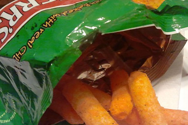 Cheetos are the "default" cheesy snack. If someone were to say to you right now, "I want cheese snacks," you would likely first thing of Cheetos. Whatever kind of Cheetos appeared in your brain may vary -- there are a ton of varieties at this point -- but if I had to guess I'd bet it would be the crunchy ones the little hard bits that look like they were pushed out of a tiny Play-Doh fun factory and then crisped until they took on malformed shapes. Those are the most popular, and most famous, of all the Cheetos offerings.