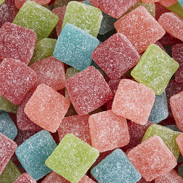 On the sour scale they are mild. I can taste a bit of tartness, from the sour powder clinging to the outside, but they don’t really elicit any kind of reaction from me. My mouth knows they should be sour, but I don’t get any of the tart bite or good sour pain from the candy. They’re lightly, mildly sour. For someone like me that’s a knock against because when I want sour I really want sour. These candies say they’re sour but they’re really not.