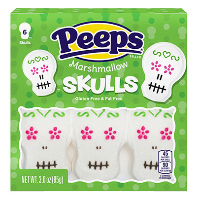A Peep is a Peep is a Peep. If you’ve had one of the standard (not Sour) Peeps then you know how every basic peep works. It’s a solid bit of marshmallow, wrapped in a coating of sugar granules, along with some minimal decoration. Whether you’re getting the Santas and Snowmen for Christmas or the Chicks and Bunnies for Easter, you surely know what a Peep tastes like. And now we can add Halloween to the list as the company has out Skulls for the season.