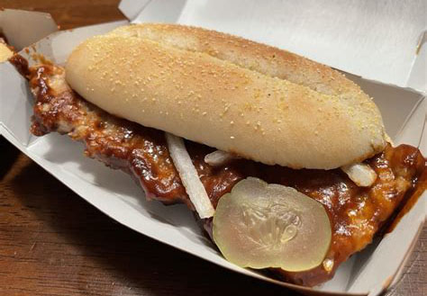 And so we come to today, where the McRib is back (at least in my region) and I made the trip to my local McDonald’s to sample this limited offering once more. And, I have to say, it failed. I obviously only have my local restaurant to feed from, so my data mix is limited. I’m in a small town now, and we have but one McDonalds; if I still lived in a bigger city I could sample a few other locations to see if my experience with this sandwich was the norm now or an outlier. But considering McDonald’s has a standardized way they make all their food, and that everything is supposed to meet that same standard every time, I have to wonder if, somehow, McDonald’s has fucked up their best, seasonal item.