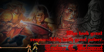 sprites (chronologically): He accompanied John Morris to help save Europe, where by John Morris' view, it was the same purpose. However, there was a deeper secret to why Eric vowed to destroy Dracula: Eric Lecarde's wife, Gwendolyn, who turned into vampire and having to put her to death. Interesting rumor about the name of Lecarde is lays an equation of (Maria) Lenarde + Alucard = Lecarde. |