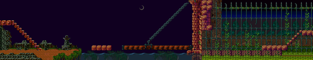 Later in that game, though, we come across another courtyard. A rundown opening for the Castle Court, Stage 5 of Super Castlevania IV, finds Simon climbing through a marshy, vine-filled area, attacked by frogs and birds, before tracking into the inner courtyard, a walled in area with old statues (and even a cameo of the statue that once held Sypha Belnades). Interestingly this stage lacks a boss fight, instead leading the hero directly into Stage 6 instead.