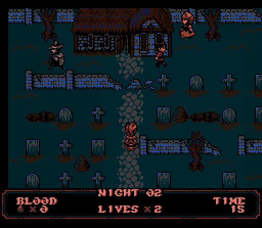 The vampire hunters (of which there's one at the start of the game with more added over the course) are like the ghosts in Pac-Man -- if they touch Elisabeth they will kill her. They are pretty single-minded and once they've seen Elisabeth they will motor towards her. She is slightly faster than the hunters, but she can easily get caught up on the environment as well as the villagers she's stalking.